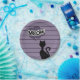 Schwarze Silhouette sagt miow, halloween lila Streifen Hintergrund