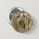 Dieser niedliche Knopf zeigt ein wunderschönes Foto eines niedlichen rosa Spitzschweins, das aus einem großen Gras auftaucht.