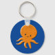 Ein niedlich orangefarbener Cartoon-Oktopus. Schlüsselanhänger von Kleintieren. Bild mit 3D und glänzender Effekt auf das Design angewendet. Alles, was gesehen wird, ist gedruckt. Bei der Herstellung wird kein wirkliches 3D oder Glas verwendet. Geschenkidee für Kinder.