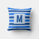 Dieses niedliche Kissen ist mit blauen Streifen versehen und kann mit einem Initial individuell gestaltet werden.