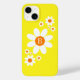 Dieses ansprechende Handy-Gehäuse verfügt über weiß gefärbte Blume mit gelbem Hintergrund und anpassbarem Initial.