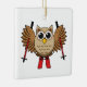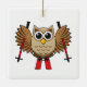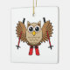 Eine Illustration eines niedlichen Cartoon-Eule-Skilaufs mit seinem Lieblingsrottski und seinen Rottöckeln. Was macht Sie glücklich und aufgeregt im Winter? Ist es der Schnee, der Wintersport, die weißen Berge oder das Wetter selbst? Dieses kawaii Design ist eine Geschenkidee für Skifahrer, Skifahrer und Winterfreunde.