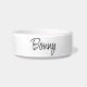 Dieses niedliche, moderne Skript füttre Schüssel wird gut in Ihrer Küche aussehen. Fügen Sie den Namen Ihres Tieres in den Bereich Personalisieren ein.