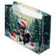 Niedlicher Skunk Cartoon - Funny Weihnachtsmannmütze Skunk mit Candy Cane & Gifts. Mit diesem bezaubernden Weihnachtsschunk-Cartoon lassen Sie Ihren Urlaub fröhlich werden! 🦨 🎅 mit einer Weihnachtsmannmütze und einem Zuckerrohr und einem roten Ornament besticht dieser schwarz-weiße Stein in einer schneebedeckten Winterlandschaft mit dekorierten immergrünen Bäumen und festlichen Geschenkboxen. Ideal für Tierfreunde, Cartoon-Fans und für alle, die Spaß an lustiger und niedlicher Urlaubskunst haben.