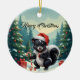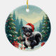 Niedlicher Skunk Cartoon - Funny Weihnachtsmannmütze Skunk mit Candy Cane & Gifts. Mit diesem bezaubernden Weihnachtsschunk-Cartoon lassen Sie Ihren Urlaub fröhlich werden! 🦨 🎅 mit einer Weihnachtsmannmütze und einem Zuckerrohr und einem roten Ornament besticht dieser schwarz-weiße Stein in einer schneebedeckten Winterlandschaft mit dekorierten immergrünen Bäumen und festlichen Geschenkboxen. Ideal für Tierfreunde, Cartoon-Fans und für alle, die Spaß an lustiger und niedlicher Urlaubskunst haben.