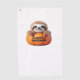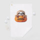 Niedlicher Sloth sitzt in einem Kürbis. Text Happy Golfhandtuch