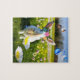 Niedliche Bunny Puzzle Concept Art mit Vögeln und Blume Frühjahr und Sommer