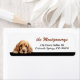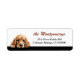 Die linke Seite dieser Rücksendeadressetiketten zeigt einen niedlichen, buff-farbenen Cocker Spaniel-Hund, der über eine Kante späht. Ihr benutzerdefinierter Text befindet sich in Zimtbraun und Schwarz auf der rechten Seite. Alles ist auf einem weißen Hintergrund platziert.
