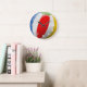 Schönes Bild eines modernen, hellen und lebendigen blauen, grünen, roten und gelben klassischen Beachballs. Dekoratives, hübsches, modernes und trendiges Design mit einer Vielzahl von stilvollen, niedlichen, unterhaltsamen oder klassischen Produkten und passenden Dekogegenständen.