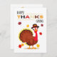 Eine farbenfrohe Grußkarte mit elegantem Typografie-Text "Erntedank" und ein niedlicher Truthahn mit einigen Herbstblättern. Die Karte enthält eine wunderbare Begrüßungsnachricht auf der Rückseite, die personalisiert werden kann.