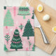 Niedlicher Spaß Rosa und grüne Weihnachtsbaummuste Geschirrtuch
