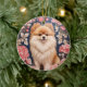 Niedlicher Spitz Hund rosa Blütenblättrig Keramik Ornament