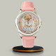 Niedlicher Spitz mit Aquarellfarben-Blume-Monogram Armbanduhr
