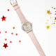 Kinderuhr aus Edelstahl mit rosa Lederarmband