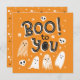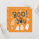 Niedliche Spooky Handlettered Boo To You Card mit kleinen Geistern und Schädeln auf orangefarbenem Hintergrund