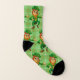 Socken haben karierten, hellgrünen Hintergrund auf jeder Innen- und Außenseite, überlagert mit niedlichem, kleinen Kobold-Mann, der mit dem Zazzle-Werkzeug gemustert ist.