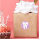 Adorable Cartoon Zahn auf einem lila Hintergrund von Zähnen und Blume
