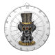 Dieses niedliche Ausrüstungsbeschreibungen ein kleiner schwarzer Labrador-Retrieverwelpe mit einem Steampunk Spitzenhut und Schutzbrillen. Der Hund sitzt sich auf einem großen metallischen Gang mit seinen Tatzen neben einander hin und vorwärts schaut mit seinem Kopf, der etwas zu einer Seite gekippt wird. Der sortierte Haupt- und kleine Überkörper zusammen mit den Details im Pelz und im Metall schaffen eine schöne Kombination eines Cartoon und des realistischen Blickes. Dieser entzückende Entwurf des goldenen Retrievers ist ein einzigartiges Beispiel des viktorianischen Futurism alias Steampunk.