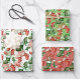 Niedlichen kleine Weihnachtsfeiertage in Rot und Grün sorgen für ein fröhliches und festliches Strumpf auf diesem Verpackungspapier. Weißer Hintergrund. Grüner Hintergrund. Rosa Hintergrund.