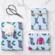 Ein lustiger gemusterter Weihnachtsweihnachtssang in Rosa und aquamarin mit einem Haufen Heiliger. Jedes Blatt ist etwas anders - eine Kombination aus Weihnachten-Strumpf, heiligen und hässlichen Pullover. Der Hintergrund ist auf allen 3 Blättern blassblau, kann aber leicht verändert werden.