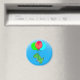 Niedlicher Cartoon Baby T-Rex im blauen Himmel mit Ballons. Spezielle Magnete für Babys. Geschenkidee für Kinder, die Dinosaurier Liebe.