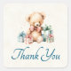 Vielen Dank an Aufkleber mit einer niedlichen Abbildung mit einem Viktorianischen Teddybär. Tragen eines extravaganten roten Bogens. Gezeichnet in einem niedlichen altmodischen Vintagen Stil. Rote und blaue Pastellgeschenke umgeben diesen herzhaften Bären.
