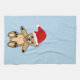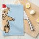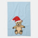 Niedlicher Teddy Bär mit Weihnachtsmannmütze Blue Weihnachtsküche Handtuch. Niedlicher Teddybär mit roter Weihnachtsmannmütze. Der Hintergrund ist blau.
