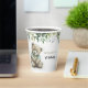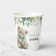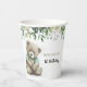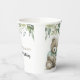Niedlicher Boho Aquarellteddy trägt grüne Blätter jedes Alters Geburtstagsparty Papier Tasse. Passen Sie es mit Ihrem Namen und Text an.