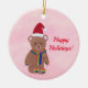 In diesen Weihnachtsschmuckstücken ist mein Gemälde eines niedlichen Teddybären mit einer Weihnachtsmannmütze und mit Regenbogenstreifen dekoriert. Der Hintergrund ist eine Mischung aus rosa und Happy Holidays ist rot geschrieben. Das Design ist auf beiden Seiten bedruckt und der Text kann mit Ihrem eigenen Urlaubssegment angepasst werden. Vielen Dank für Ihren Einkauf bei CherylsArt auf Zazzle.