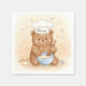 Diese personalisierte Papierserviette ist mit einem kleinen Teddybärchen-Koch versehen, der eine Schüssel mit einem Holzlöffel umrüttelt. Er trägt den Hut eines weißen Koch mit dem Namen deines Geliebten.