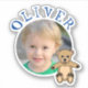 Niedlicher Teddy Bear Round Frame Name und Foto Ki Aufkleber