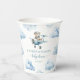 Vorstellung von bezaubernden hellblauen Papierbechern für eine Babydusche mit einem wasserfarbenen Teddybär, der auf einem Flugzeug steil in die Höhe schießt. Mit diesen stilvollen und charmanten Tassen stärken Sie Ihre Feier und erleben eine Touch Eleganz in Ihrer Babydusche.