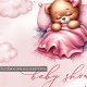 Das phantastische Design für mädchenhafte Baby Shower Einladungen bietet Niedliche Watercolor Rosa Schlafteddy Bären in der Cloud. Moderne Schrift Typografie. Zögern Sie nicht, mich zu kontaktieren, um passende Artikel oder Anpassungen zu erhalten. Violetdrucke ©