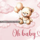 Whimsical Design für Mädchen Shower Einladungen mit Niedlichen Aquarell rosa Teddy Bär über die Wolke mit Elfenbeinballons. Moderne kalligraphische Schriftart mit Herzensschrift sagt "Oh Baby". Zögern Sie nicht, mich zu kontaktieren, um passende Artikel oder Anpassungen zu erhalten. Violetdrucke ©