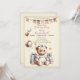 Ein charmantes Design mit einem Teddybär in Pastelltönen, umgeben von Ballons, Geschenken und Sternen. Es ist mit einer Garage mit Fahnen dekoriert und eignet sich perfekt für Einladungen, Grußkarten und andere festliche Produkte. Eine vielseitige Wahl für Kinderveranstaltungen, vor allem Geburtstage.