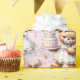 Ein charmantes Design mit einem Teddybär in Pastelltönen, umgeben von Ballons, Geschenken und Sternen. Es ist mit einer Garage mit Fahnen dekoriert und eignet sich perfekt für Einladungen, Grußkarten und andere festliche Produkte. Eine vielseitige Wahl für Kinderveranstaltungen, vor allem Geburtstage.