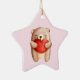 Niedlicher Teddybär mit einem roten Herz Keramik Ornament