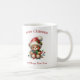 Niedlicher Teddybär mit Weihnachtsbeleuchtung und Kaffeetasse