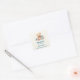 Business Aufkleber mit einer niedlichen Abbildung mit einem Viktorianischen Teddybär. Tragen eines extravaganten roten Bogens. Gezeichnet in einem niedlichen altmodischen Vintagen Stil. Rote und blaue Pastellgeschenke umgeben diesen herzhaften Bären.