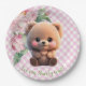 Niedlicher Teddybär Rosa Gingham Blütendusche Pappteller