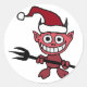 Niedlicher Teufel trägt Weihnachtshut Runder Aufkleber