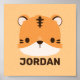 Ein niedliches Design, das Ihren Tag aufhellt. Dieses Design bietet eine niedliche Tiger Cartoon-Abbildung mit personalisiertem Namen in braun modernen Sans Serif Schriftart Stil auf pastellorange Hintergrund. Perfektes personalisiertes Kinderzimmer-Dekor für Jungs und Mädels.