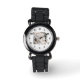 Uhr, Klassische Damenuhr mit schwarzen Lederarmband