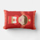Ein Kissen mit einem Cartoon eines niedlichen Jungen kleidete in einem traditionellen hellen chinesischen Bräutigamkostüm des Rotes und des Goldes an, das mit Hauptstück komplett ist. Die Grenze ist ein Muster, das unter Verwendung der chinesischen Schriftzeichen gemacht wird. Sie bedeutet doppeltes Glück, das für Eheglück verwendet wird. Dieses helle rote dekorative Kissen macht es ein perfektes dekoratives Mittelstück für Hochzeiten, oder ein Geschenk für weds eben Zuhause. Rot und Gold sind günstige Farben in der chinesischen Kultur. Bringen Sie sie mit der Brautversion des Kissens zusammen.