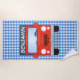 Für den LKW-Liebhaber! Dieser niedliche rote LKW wird im lustigen Cartoon-Stil gezeichnet auf einem blauen Karo-Hintergrund für einen Jungentag am Strand oder am Pool.