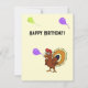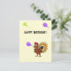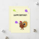 Niedlicher Truthahn mit Ballons auf gelbem Hintergrund Geburtskarte