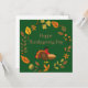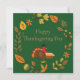 Ein Beispiel für einen niedlichen, roten, braunen Truthahn aus Cartoon, der einen schwarzen Pilgerhut trägt und während des Erntedanks einen köstlichen Kürbiskuchen serviert. Dieses bezaubernde Design ist eine Geschenkidee für Erntedank-Feiern, lustige Tierfreunde und Herbstliebhaber. Personalisieren oder anpassen Sie diese Erntedank-Karte, indem Sie Ihren eigenen Gruß zu Ihrer Familie, Freunden, Klassenkameraden oder Kollegen hinzufügen.
