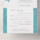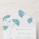 Hochzeit Einladung mit niedlich türkisfarbenen Zweigen mit kleinen Blume mit Silberkonturen, eleganten Blumenzweigen mit aquamarinen Blume, Frühlings- oder Sommerpastellfarben Blumendesign, ein romantisches, hellgrünes Bouquet mit Wildblumen. Botanische Wasserfarbe. Niedliche Blume Flasche Hochzeit Einladung. Niedliche Sammlung türkisfarbener Blume.