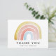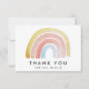 Moderne Regenbogen-Dankeschön-Karten mit einem Aquarellregenbogen in Gelb-, Rosa-, Korallenrot und Blau mit "Danke" unten in schwarzer Schrift dargestellt. Personalisieren Sie den Regenbogen Dankeschön Karte durch Hinzufügen Ihres Namens oder benutzerdefinierten Text. Die Rückseite der Karte ist leer, mit viel Platz für Ihre getippte oder handgeschriebene Dankeschön-Nachricht. Die Aquarell Regenbogen Dankeschön-Karte ist ideal für Babyduschen, Geburtstagspartys und vieles mehr!