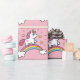 Niedlicher Unicorn auf einem Regenbogenentwurf mit kundengerechtem Farbhintergrund.